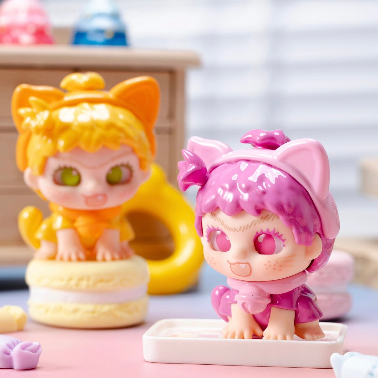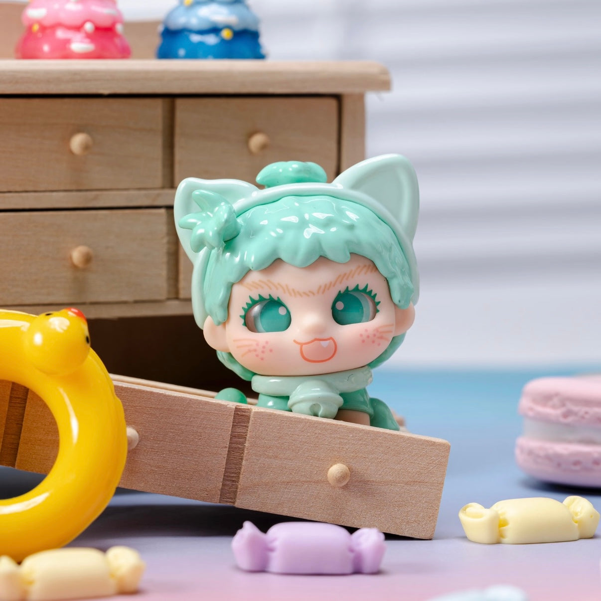 • Blind box: collectibles that come in a sealed box, with the content unknown to buyers until they open it. This collection contains 9 or 12 regular figures, and 1 hidden edition.